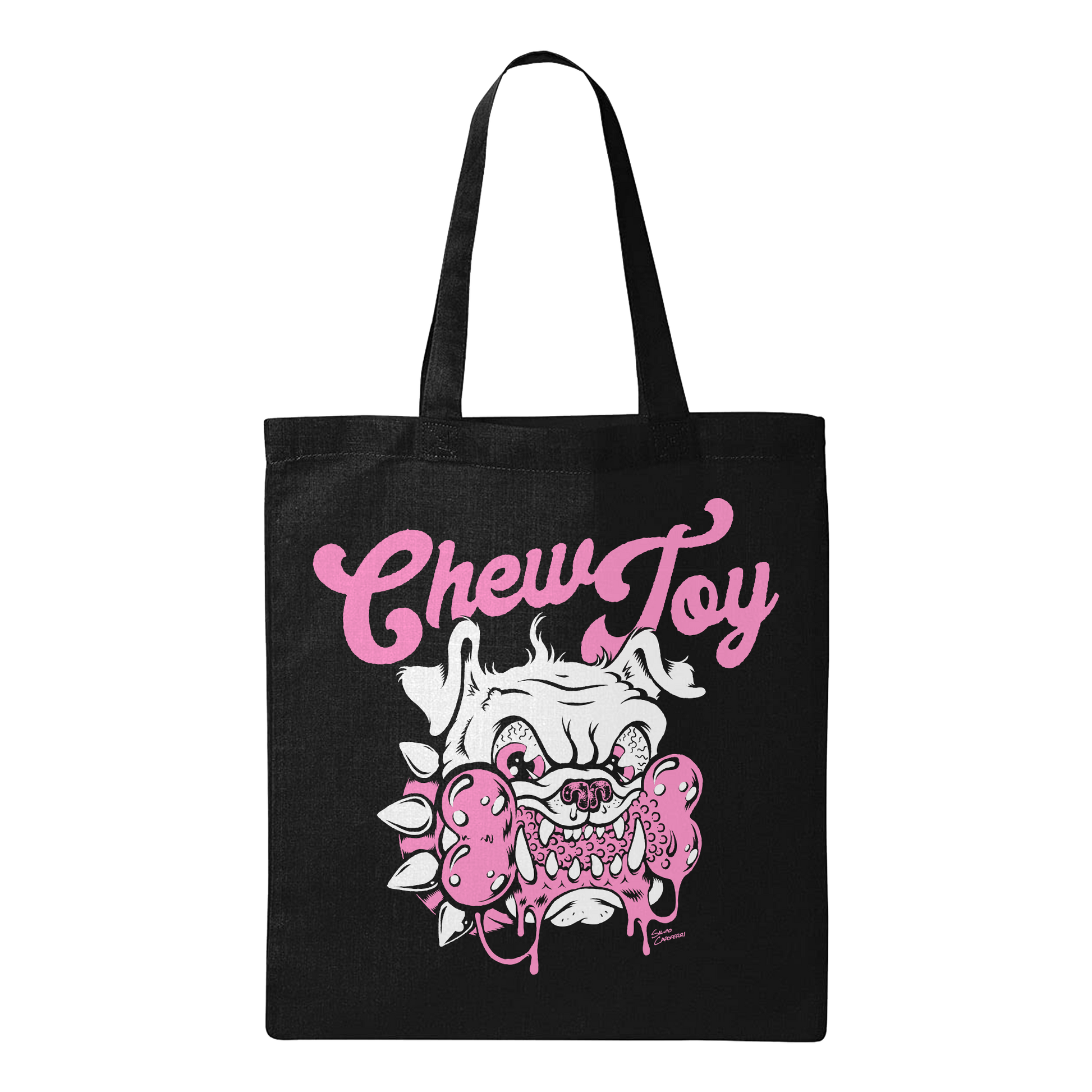 Chew Toy - Pink Bulldog - Black Tote Bag